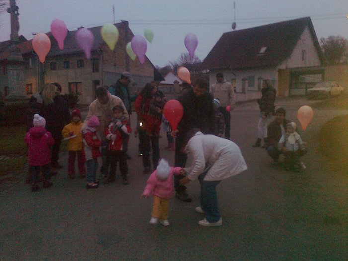 Úvod > Život v obci > Fotogalerie > Vypouštění vánočních balonků s přáním Ježíškovi dne 30.11.2012